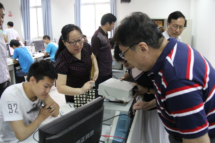 6月5日上午,验收专家杨坤涛、赵永俭、秦磊华及设备处副处长宋象军和实验室管理科科长江琦等一行来到电信系对我系2013年教学实验室建设项目进行现场验收。专家组首先听取了副系主任程文青做的实验室建设情况汇报,然后在实验中心主任杨小献的引导下到实验室现场查看设备情况和实验情况,一致认可项目建设效果并同意项目通过验收。