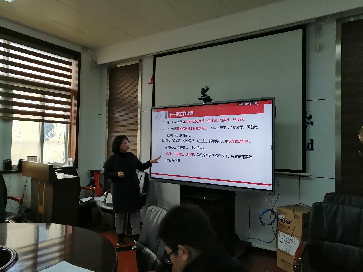 陈世英结合学生工作分享了三点意见,一是为做到全员全过程全方位育人,各位任课老师在课程管理上可以跟辅导员反馈,形成联动;二是结合生动案例和最新时事热点将思政元素讲活,让课堂更加生动;三是课后请老师们形成答疑体系,将思政工作做得更深入更全面。
