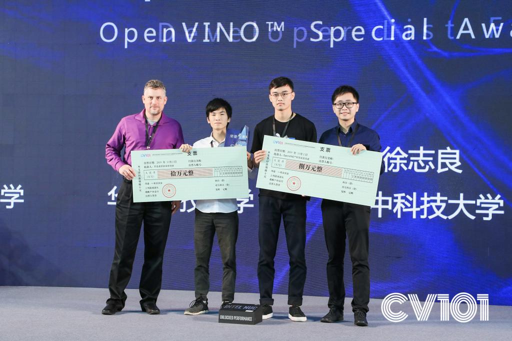 11月2日,由深圳极视角科技主办,深圳市人才工作局、共青团深圳市委员会作为指导单位,英特尔(中国)、UCLOUD作为战略合作伙伴的“CV101-计算机视觉青年开发者榜单”大赛正式落下帷幕。来自bat365在线登录入口学生梁定康、徐晨丰、徐志良、陈习武、杨贤组成的团队在许永超、白翔和林宏志老师的指导下,斩获主赛道冠军以及“OpenVINO”赛道冠军,也是唯一在两个赛道获奖的队伍,并获得18万元的现金奖励。