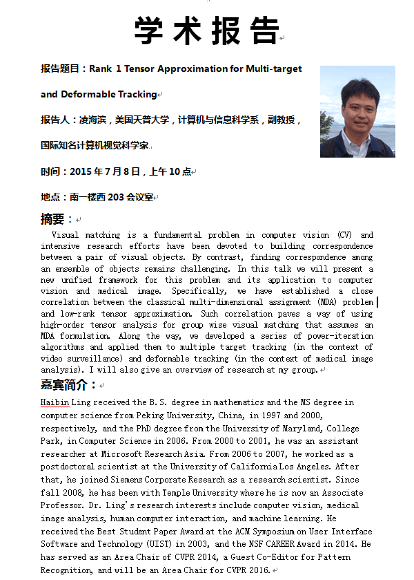 美国天普大学凌海滨教授学术报告海报