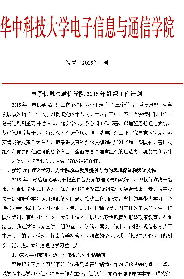 院党(2015)4号 bat365在线登录入口2015年组织工作计划