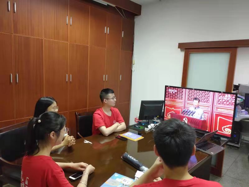 7月1日上午,庆祝中国共产党成立100周年成立大会在北京天安门广场隆重举行。中共中央总书记、国家主席、中央军委主席习近平发表了重要讲话。bat365在线登录入口组织师生党员代表在学院报告厅、会议室、实验室等多个会场集中收看大会,学习习近平总书记的重要讲话精神。