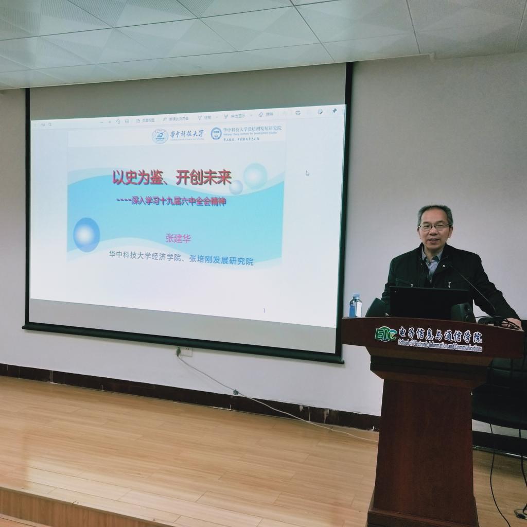 12月16日下午,电信学院学习贯彻党的十九届六中全会精神宣讲会在学院报告厅举行。学校宣讲团成员、经济学院院长张建华教授以《以史为鉴,开创未来——深入学习贯彻党的十九届六中全会精神》为题作报告。宣讲会由学院院党委书记郑小建主持,学院领导班子成员、全院教职工和学生代表参加。