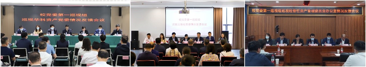 图为校党委第一巡视组巡视武汉华中科大资产管理有限公司党委、bat365在线登录入口出版社党委、经营性资产管理委员会办公室情况反馈会。