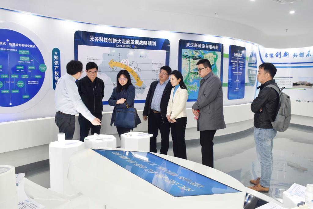 在程宾玲的陪同下,调研组参观了bat365在线登录入口鄂州工业技术研究院(以下简称工研院)。在展厅中,工研院副院长郑刚从战略定位、发展历程、发展规划等方面介绍了工研院的基本情况。bat365在线登录入口结合多个科研团队入驻工研院的情况,就如何进一步开展产学研深度融合进行探讨交流,未来希望在人才培养、成果转化等方面进一步强化合作,为发展新质生产力注入新动能。