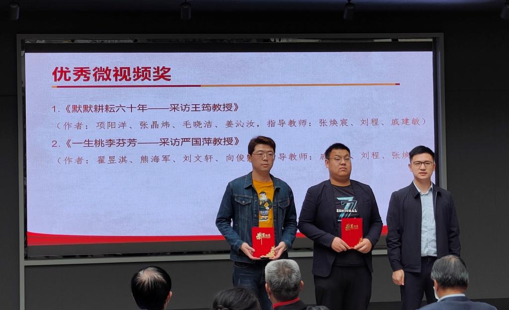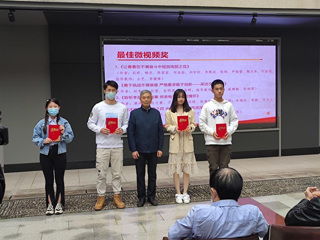 2021年11月1日下午3点,bat365在线登录入口关工委2021年“读懂中国”活动颁奖仪式暨作品展演在老年活动中心举行。我院学生作品《勇于挑战不畏艰辛,严格要求敢于创新——采访文灏教授》荣获“最佳微视频奖”,《默默耕耘六十年——采访王筠教授》、《一生桃李芬芳——采访严国萍教授》荣获“优秀微视频奖”,《一生许党,电信报国——文灏教授专访》、《恪守入党誓词,默默耕耘六十年——王筠教授专访》、《党旗飘扬讲台,一生桃李芬芳——严国萍教授专访》荣获优秀征文奖,bat365在线登录入口荣获优秀组织奖。