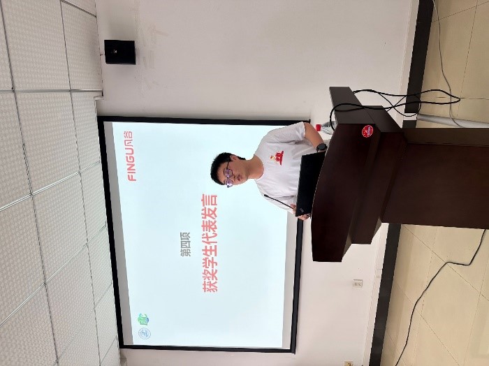 李明、贾雄杰、葛茜、电子工程系主任马洪教授为获奖学生颁奖。获奖学生代表时豪、刘聆子表示,凡谷电子对他们的关心支持将转化为动力,同学们会以更加饱满的热情投入到学习科研中,不断提高专业素养,努力成为具备创新精神、实践能力和国际视野的高素质人才。
