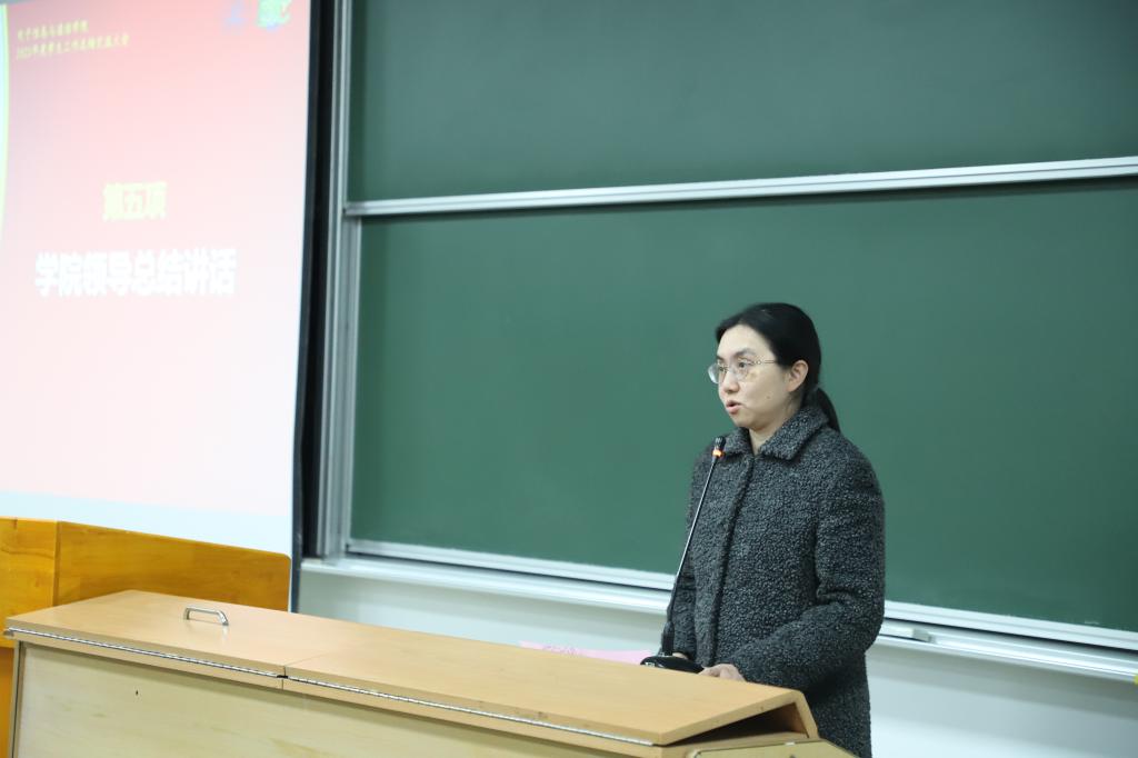 葛茜在总结中感谢专业教师和学工团队的辛勤付出,感动于同学们成长中的不懈努力以及师生的双向奔赴,强调同学们要向榜样看齐,学院会继续努力创造更好的平台,提供更好的条件,助力同学们茁壮成长,希望全院师生在2024年创造新成绩。