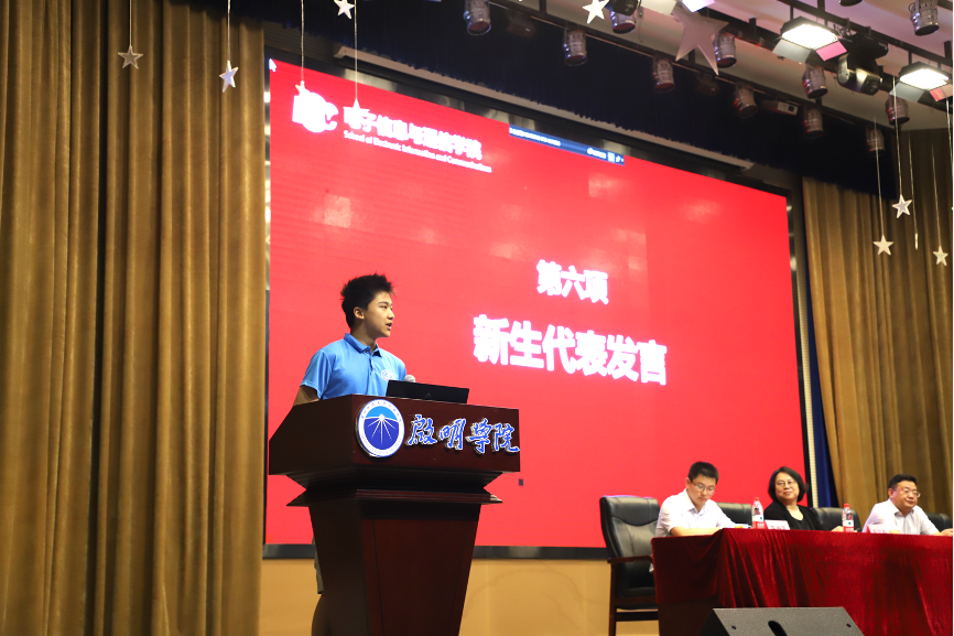 新生代表蔡泽旸则表示,初入大学,难免迷茫失措,找到适合自己的方向至关重要,这就需要同学们在勇敢试错中发掘自身潜力,找准前进方向,并沿着选定的方向坚定前进,同时也要坚守初心,时刻鞭策自己。“翱翔的姿态永远不止一种”,希望同学们都能找准定位,活出各自的精彩。