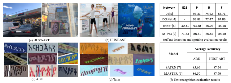 基于阿姆哈拉语的文字图片识别是一项极具挑战性的任务。为了解决构成阿姆哈拉语的不同字母具有高度的视觉相似性、目前缺乏公开的面向非洲文字理解的文字数据集等难点,王兴同学在白翔教授指导下,提出了首个全面的、公开的阿姆哈拉文字识别数据集,包含是HUST-ARTHUST-ASTA.B.E.Tana四个部分总共包含了15039张真实场景的文字图像以及2927682张合成的文字图像针对该数据集,王兴与合作者设计了大量的实验,以评估目前最先进的文字识别方法在该数据集上识别阿姆哈拉语文字的性能。