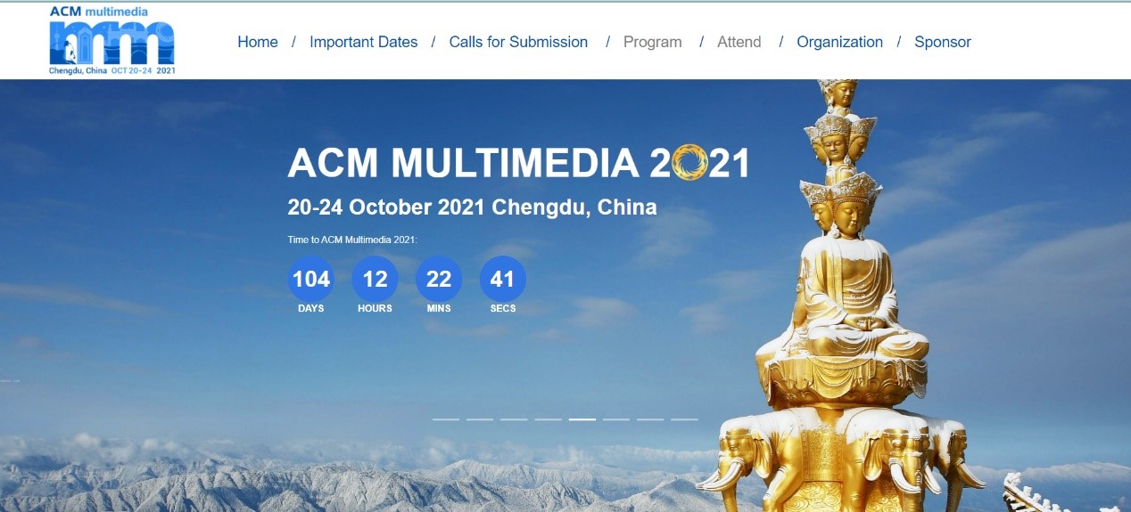 1993 ACM SIGMM 成立以来,ACM Multimedia 一直是展示多媒体领域科学成果和创新工业产品的全球首屈一指的会议和重要的世界盛会。 ACM Multimedia 2021 将有史以来第一次在中国四川省省会成都举办。 在 ACM 多媒体 2021 上,组委会将通过口头、视频和海报演示、教程、小组、展览、演示、研讨会、博士座谈会、多媒体大挑战、勇敢的新想法等形式,展示涵盖多媒体领域各个方面的技术会议 和 关于塑造研究领域、开源软件竞赛,以及鼓励艺术家和计算机科学家共同认识和发现艺术交流前沿的互动艺术项目。