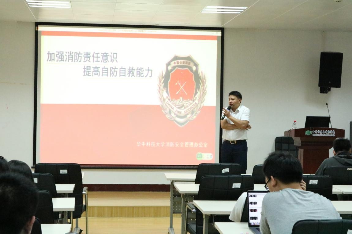 接着,毛处长为大家演示了在发生火灾的情况下,如何使用灭火器和消防栓来消除火灾或减少火灾造成的损失,并详述了不同条件下火灾逃生的方法。同时,毛处长为大家详细讲解了新发布的消防安全条例,让同学们对消防法律法规有的更深刻的认识。