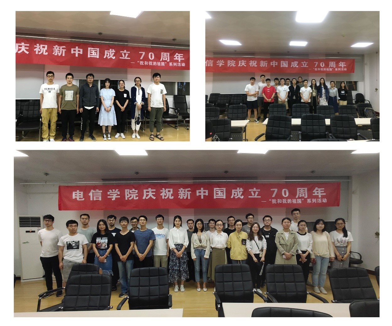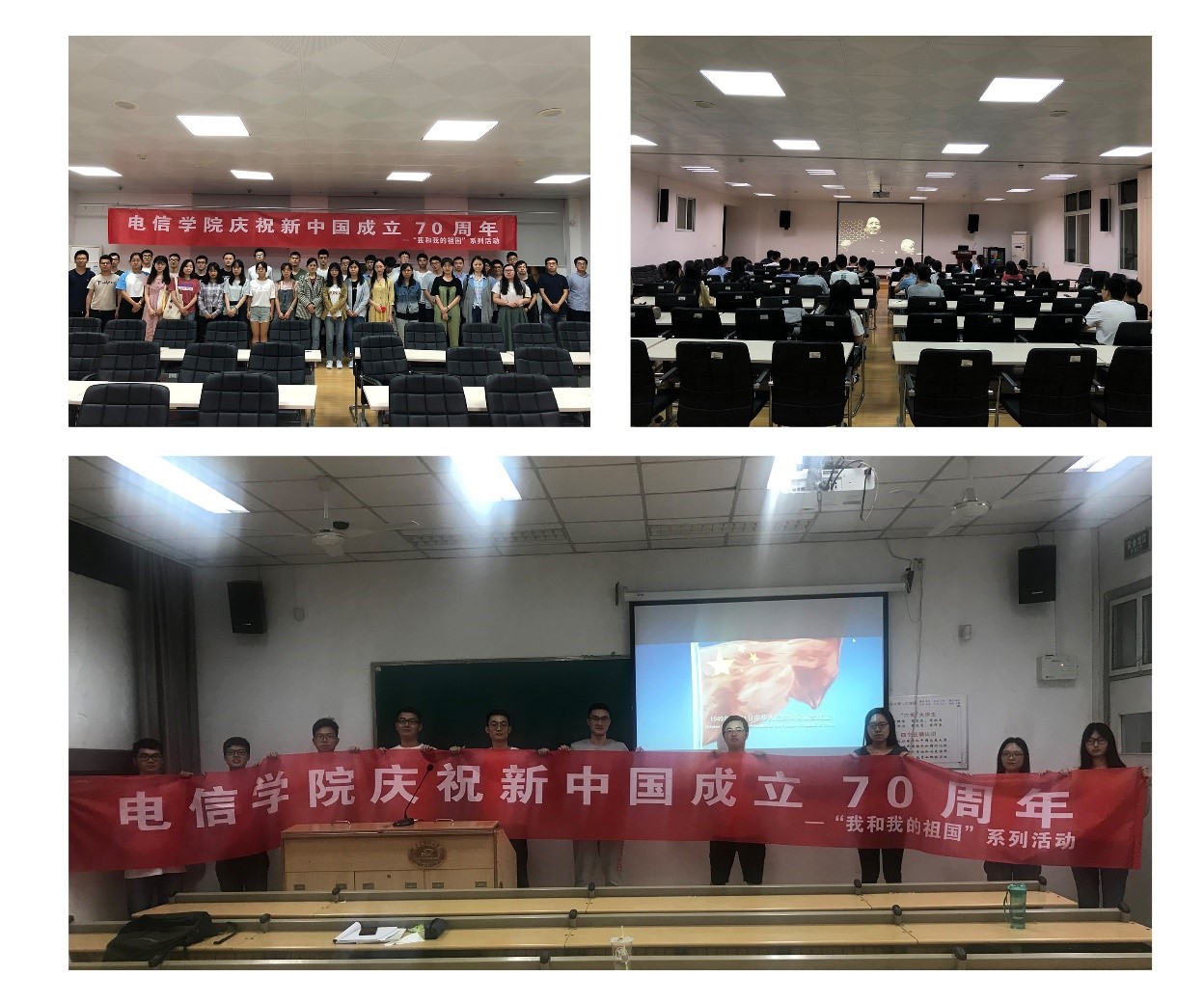18级通信电子系党支部、18级信息系党支部、18级专硕第一党支部观看了影片《建国大业》,该影片主要讲述以毛泽东为首的共产党人通过建立广泛的爱国统一战线,获得了全中国人民群众的支持,最终成立新中国的故事。通过观看这部影片,我们对抗战胜利到建立新中国这段历史有了更系统更深入的了解,也深刻明白了老一辈革命家为建立新中国而经历的千辛万苦和千难万阻。今年是中华人民共和国成立70周年,我们青年一代应该不忘历史,警钟长鸣,努力学习,为实现民族复兴贡献自己的一份力量。