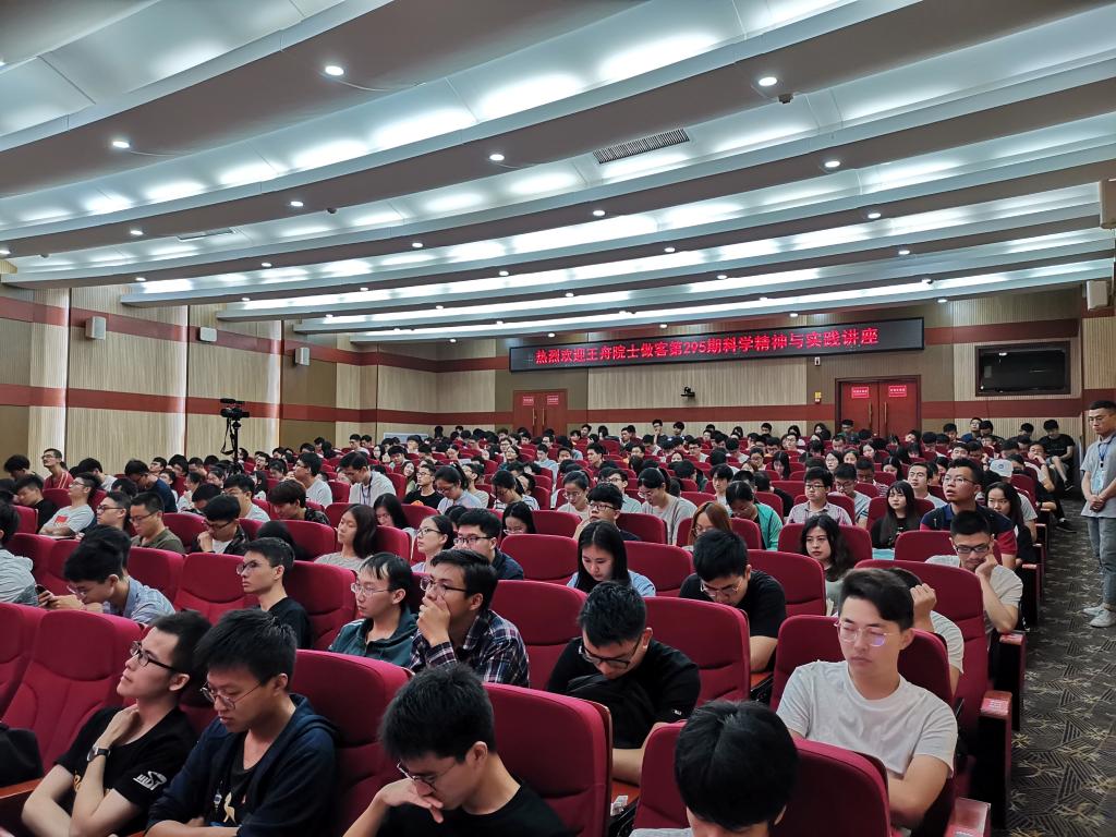 在最后的提问环节中,同学们踊跃发言。有同学问到在研究生阶段如何向工程科学家的方向培养自己,也有同学谈及如何应对这一过程中可能出现的困难,王舟院士针对大家的问题,分享了自己的感悟和体会,一一做了深入浅出的解答。
