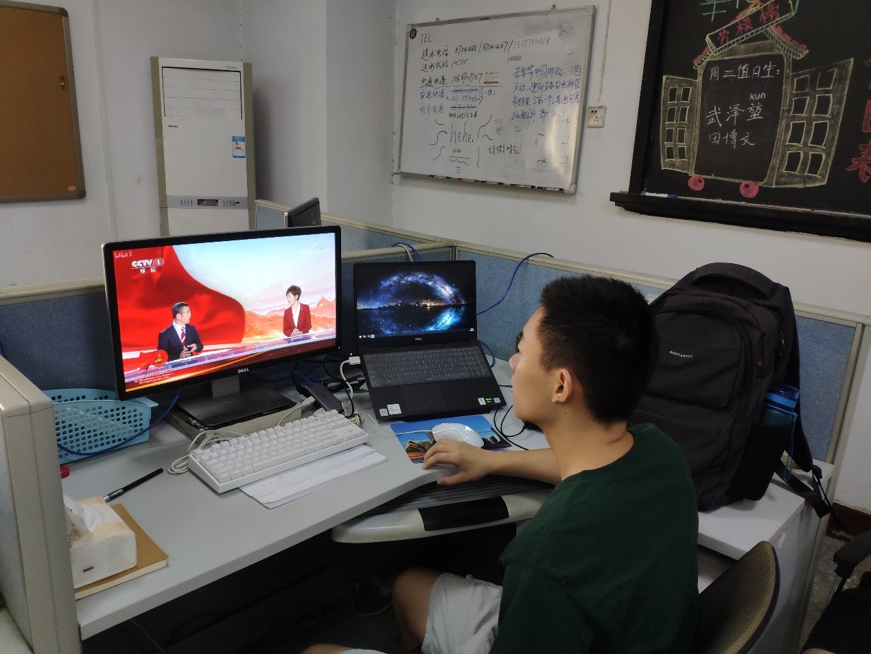 19级专硕第二党支部刘康在实验室收看大会(图一)