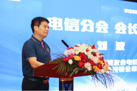武汉校友会电信分会会长、84级电信校友、武汉晨鸣中锦置业投资公司总经理刘波发言。他分享了全球各地校友会对武汉校友会电信分会成立诚挚祝贺,他指出电信分会的成立,是为了更好地团结校友,增强交流与合作,旨在促进与加强校友与学院之间的联络,他希望今后能经常组织开展多层次的联谊活动,成为母校品牌与口碑的传播站和对接资源提供赋能与回馈的加油站。