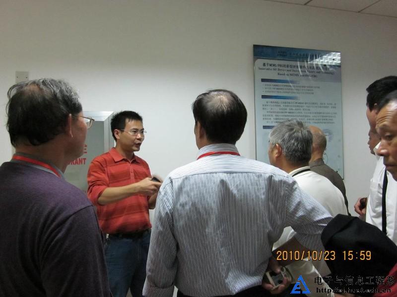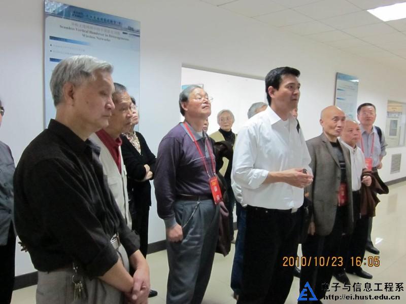 2010年10月23日下午,参加电信系五十周年系庆活动的部分老校友在电信系志愿者的指引下,参观了武汉光电国家实验室(筹)光通信与智能网络研究部的实验区。电信系宽带中心王德胜副教授等教师为老校友简要介绍了目前研究部的科研环境、部分在研项目进展和部分科研成果。