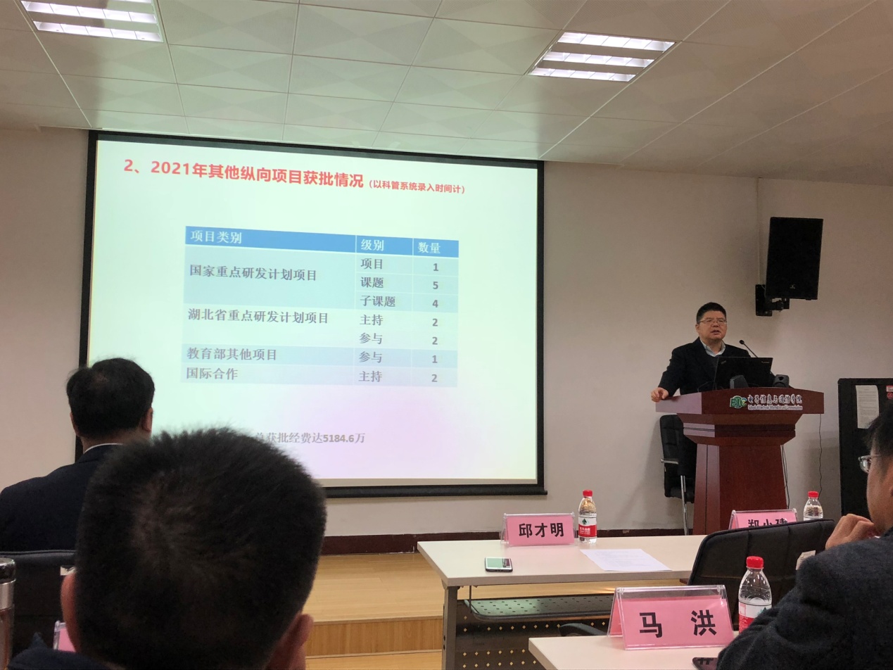 邱才明介绍了2021年学院在国家自然科学基金方面的申报和获批情况:截止到目前,我院共获批项目12项,获批经费1210万,另有一个联合基金重点项目刚通过函评,顺利进入会评。邱才明对学院在本年度的各类新增项目、到账经费和奖励申报作了梳理和分析。