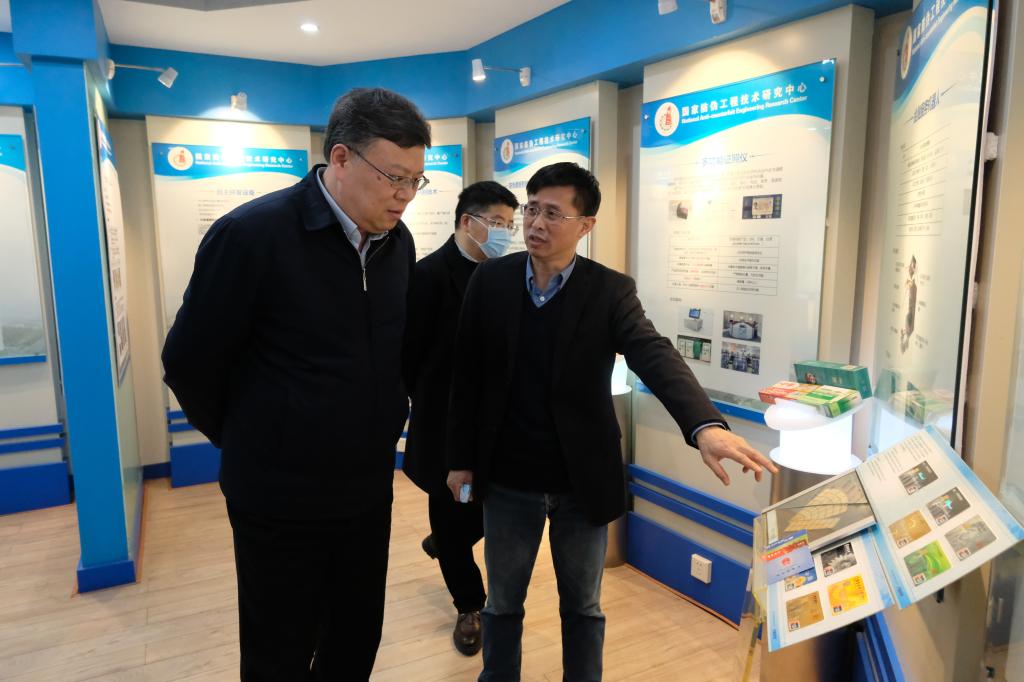 尤政一行首先参观了国家防伪工程技术研究中心,国家防伪工程技术研究中心主任尤新革介绍了中心建设情况,展示了中心在光学防伪与机读鉴伪等方面取得的重要成果及参与的国家重大工程情况。座谈会上,院长邱才明介绍了学院发展历史沿革和“十四五”规划,汇报学院2021年在人才培养、学科建设、科学研究、人才引育等方面所做的工作及未来重点工作方向,总结梳理了制约学院发展的现实困难。交流环节,学校各职能部门负责人对bat365在线登录入口的发展表示积极支持并提出指导性建议。