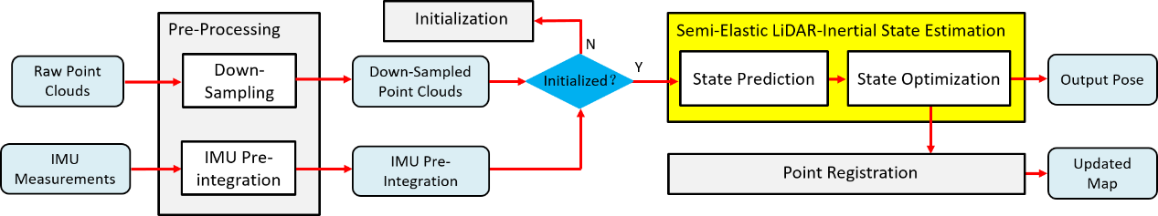 全国SLAM竞赛是由中国图象图形学学会(CSIG)主办,厦门大学、CSIG三维视觉专委会承办。竞赛流程分为预赛、复赛、决赛三步。其中,预赛以精度为唯一评测标准,复赛综合评价精度和时间开销,决赛则在预赛的基础上评价工作的创新性及工作完整度。我校Peach-SLAM参赛队在预赛、复赛和决赛中均获得了第一名的成绩,且参赛代码是由该团队从零开始编写而成(系统框图如图1),并在整个竞赛过程中未作出任何参数上的调整。