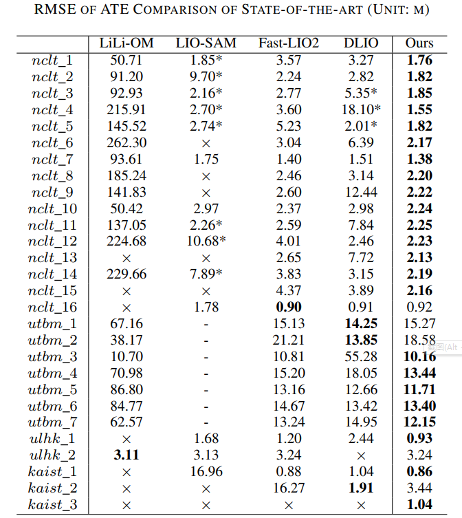 除了在全国SLAM竞赛中获取优异的成绩外,Peach-SLAM参赛队的工作在四个公开数据集上都能实现卓越的位姿估计精度(如图2所示)。该工作的代码已开源在https://github.com/ZikangYuan/semi_elastic_lio。
