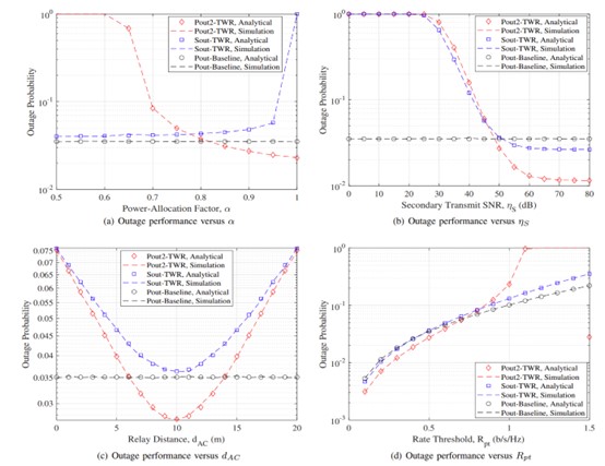 该论文考虑了一种三时隙协作中继模型,其中两个授权主用户在非授权中继的协助下,交替在前两个时隙相互通信;在第三个时隙中,中继转发解码后的主用户信号和次用户信号,并合理地进行功率分配。该论文通过蒙特卡洛模拟分析并验证了主用户和次用户的中断概率,证明所提出的协议能确保主用户的性能优于非协作方案,同时提高了次用户的性能。此外,该论文还通过理论证明存在一个“双赢”的中继部署区域——即当中继部署在该区域时,主用户和次用户的中断性能都能得到有效改善,从而显著提高授权频谱利用率。