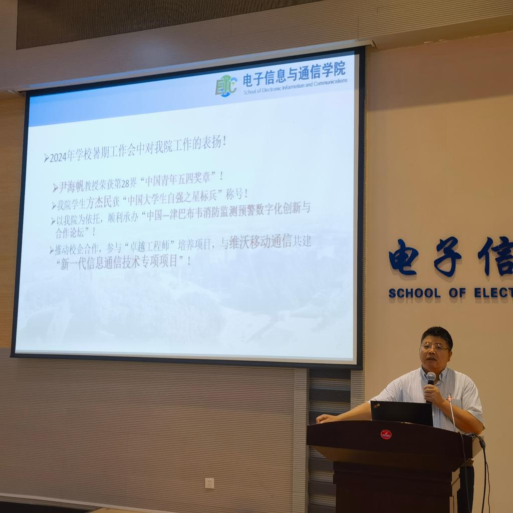 葛茜传达校党委书记张广军所作“重塑目标 勇担使命 奋力书写中国式现代化的华科大篇章”和校长尤政所作“深化教育综合改革 激发创新活力 全面推进教育科技人才一体化”的主题报告等暑期工作会议报告精神,传达学校对院系综合改革相关要求,表示学院将深入学习贯彻党的二十大二十届三中全会精神和学校暑期工作会议精神,积极深化教育综合改革、深化科技体制改革、深化人事人才制度改革,对标对表学校发展愿景,凝神聚力、勇担使命、踔厉奋发追求卓越,落实落细学院高质量发展任务清单。同时分享暑期学习调研工作思考,对学院师德师风建设、人事人才、安全、后勤等工作特别是本学期筹办世界元宇宙大会等重要会议进行相关通报和部署。