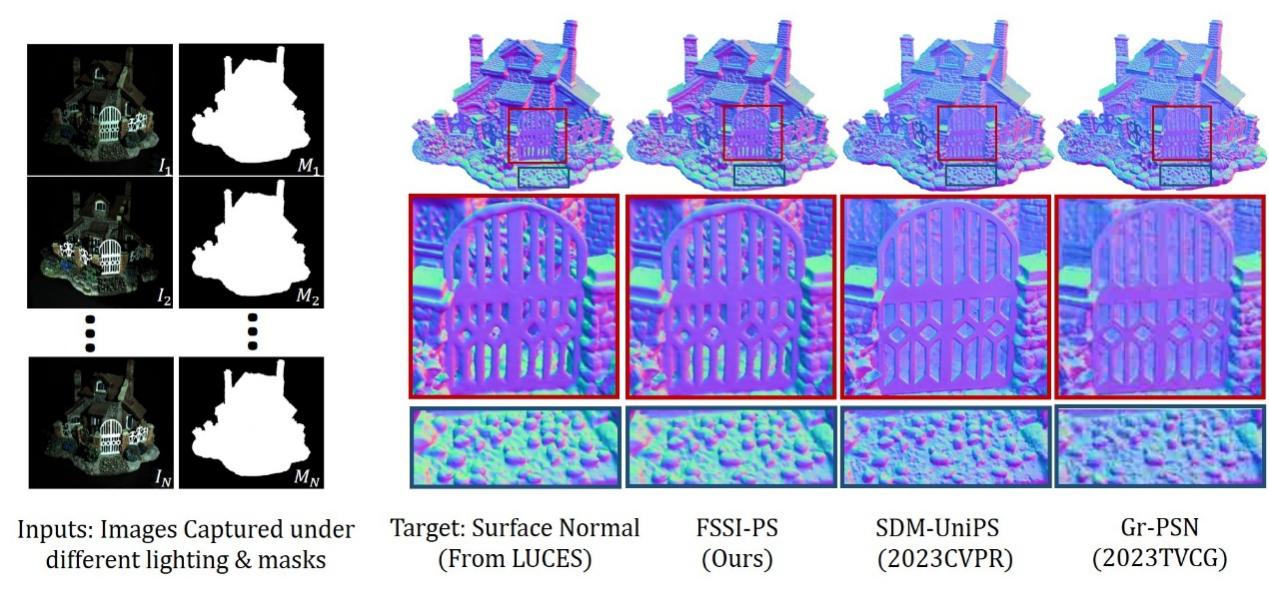 当前光度立体法主要使用图神经网络(GCN),Transformer等模块,这些模块需要消耗极大的计算资源,且难以对齐图像间和图像内部的信息,在处理大规模、大尺寸的输入图像时精度受限。