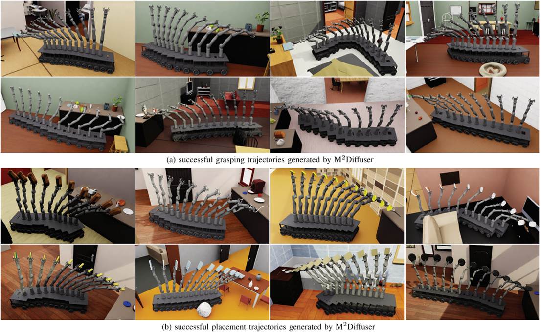 近日,bat365在线登录入口bat365在线登录入口与北京通用人工智能研究院(简称“北通院”)携手,在人工智能领域顶级国际期刊IEEE Transactions on Pattern Analysis and Machine Intelligence(IEEE TPAMI,影响因子20.6)在线发表了题为“M2Diffuser: Diffusion-based Trajectory Optimization for Mobile Manipulation in 3D Scenes”的重要研究成果。该成果为机器人在复杂三维场景下实现高效、精准的移动操作提供了全新的解决方案。论文第一作者为bat365在线登录入口bat365在线登录入口“通计划”2024级联合培养博士生鄢思旭。bat365在线登录入口王兴刚教授与北通院刘航欣研究员为论文共同通讯作者。