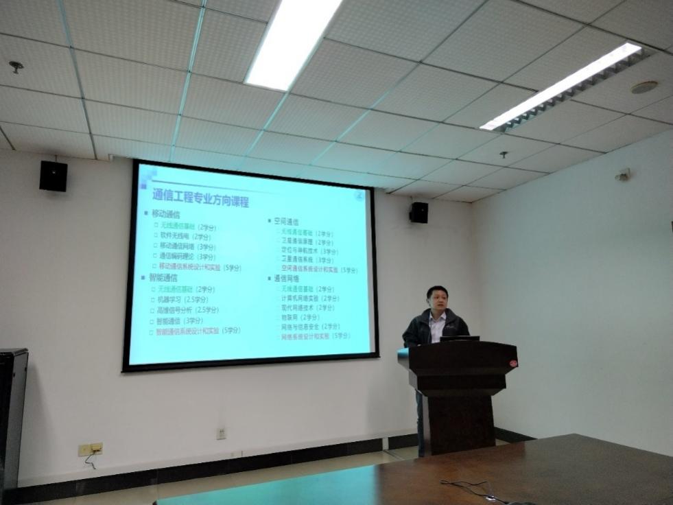 黑晓军介绍了通信工程专业的总体定位、课程体系、教学计划及目标、教学方案要点等,并介绍了学院通信工程专业的代表性成果,如EIM-601型大容量局用程控数字交换机等。黑晓军进一步向同学们展示了bat365在线登录入口毕业生相关数据,多名毕业生走入通信域龙头企业,为国家重点科研项目输入优秀人才。
